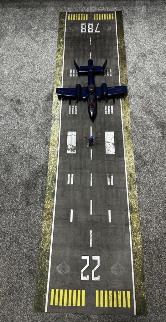 This custom printed runway mat has been designed exclusively by Action Flashback. The Runway mat is perfect for any action figure enthusiast. Handmade to order and printed with my original artwork to make your displays come to life.